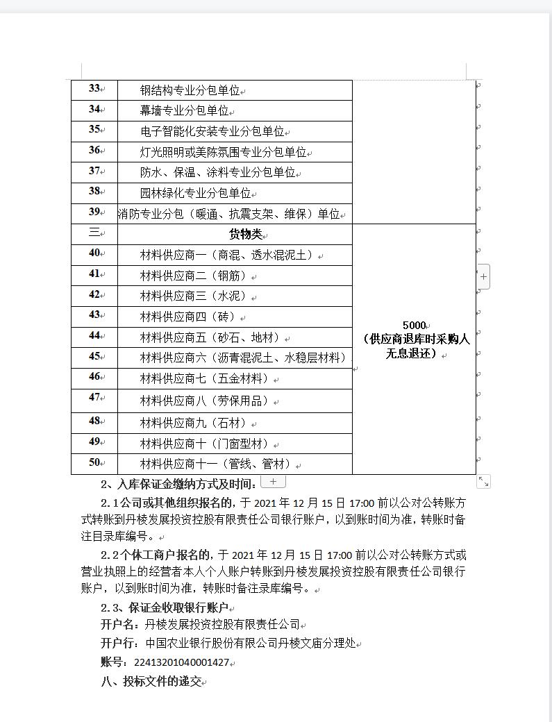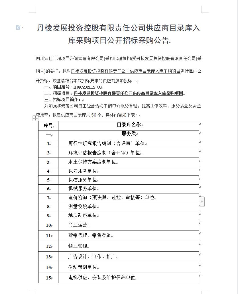 【丹發(fā)展公司】丹棱發(fā)展投資控股有限責任公司供應商目錄庫入庫采購項目公開招標采購公告